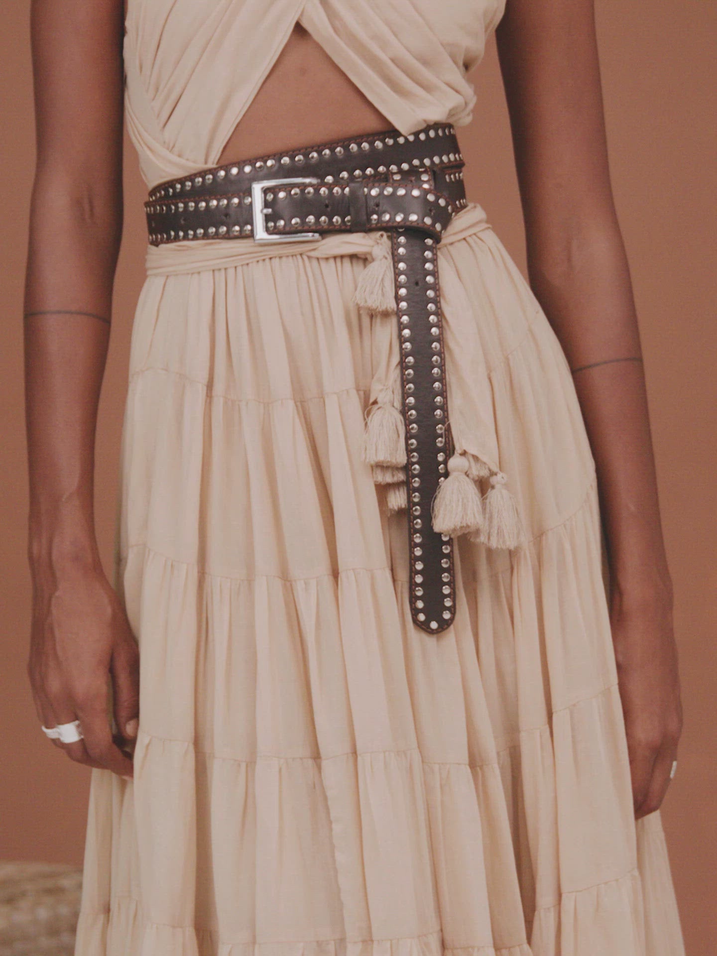 Forget the buckle and move forward with a fashionable edit. This belt has a wraparound knot detail that makes adjusting the size easy. Completed with studs and crafted from a premium smooth leather this belt works with everything from blazers, jeans and our beautiful billowy dresses.