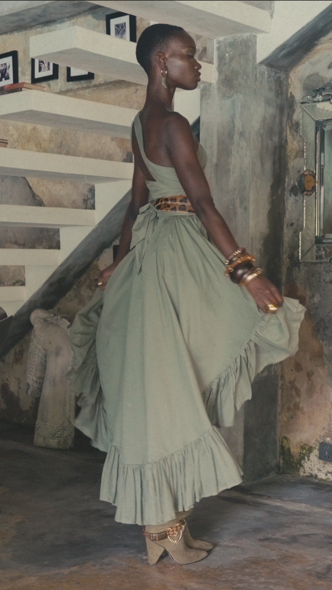 This style flatters the female form in ways beyond expectation. This leather piece can be tied and wrapped around the waist, accentuating the smallest part. We recommend pairing it with one of our flowing dresses.