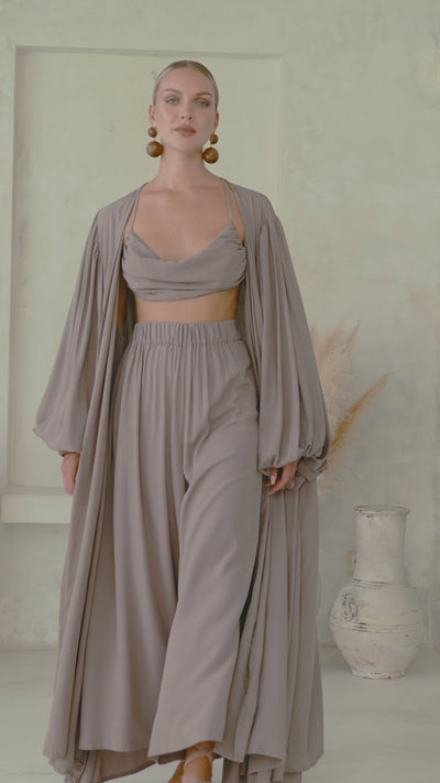 Boasting our signature voluminous balloon sleeve and is executed in a relaxed fit and detailed with a flowing silhouette. This jacket teamed with the coordinating AVA Crop Top and AVANA Wide leg pants makes for the perfect nonchalant ensemble designed to push through seasons and trends.