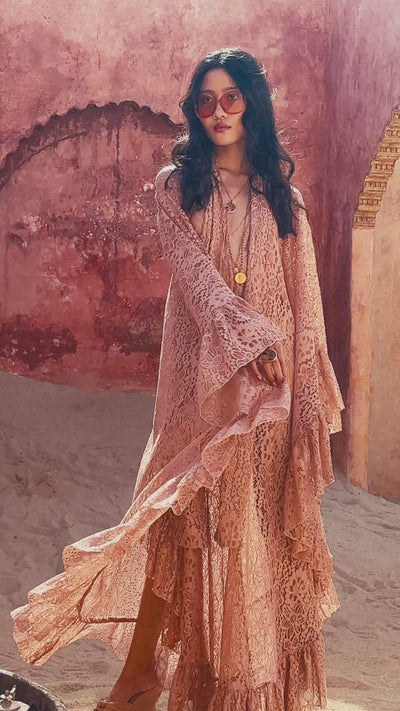 The Felipa Maxi Kaftan is a romantic, statement-making piece that exudes effortless elegance. Featuring a button-down front, dramatic layered ruffles, and soft side drapes, this kaftan blends fluidity with structure. The neckline is adorned with a delicate tie, offering versatility and charm. Whether worn open as a flowing outer layer or closed as a full dress, the Felipa Kaftan embodies the essence of resort-luxe femininity.