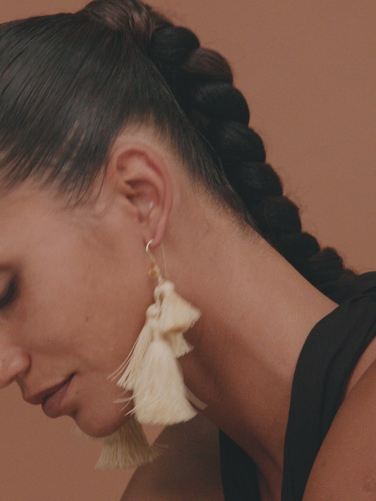 We present the Ana Tassel earring in a teardrop-inspired silhouette to lend your accessories a timeless update. Minimalist with a fresh finish, this pair will certainly remain your all-time top pick. Lightweight, made in a rayon/silk blended thread.
