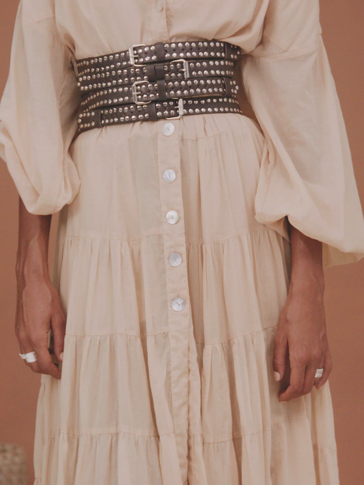Injecting a dash of edge into this corset belt. Detailed with a studded-allure, this number blends masculine and feminine notes with the intention to create an hourglass figure to enhance your feminine silhouette. Crafted with a smooth leather and fully adjustable with the ability to be worn at the hip or under the bust, this piece is a staple and standout piece to pair with your sartorial downtown edits.